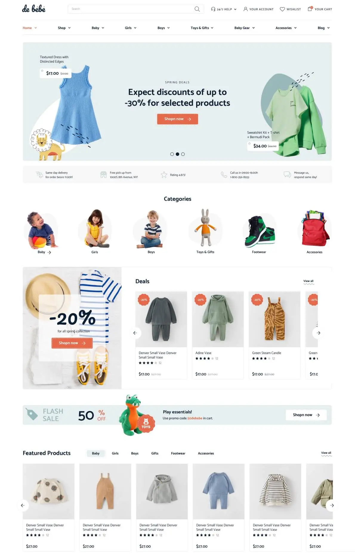 DeBebe is a charming, modern WordPress WooCommerce theme with all the necessary features for Baby and Kids Stores. You can showcase children’s products in an attractive manner